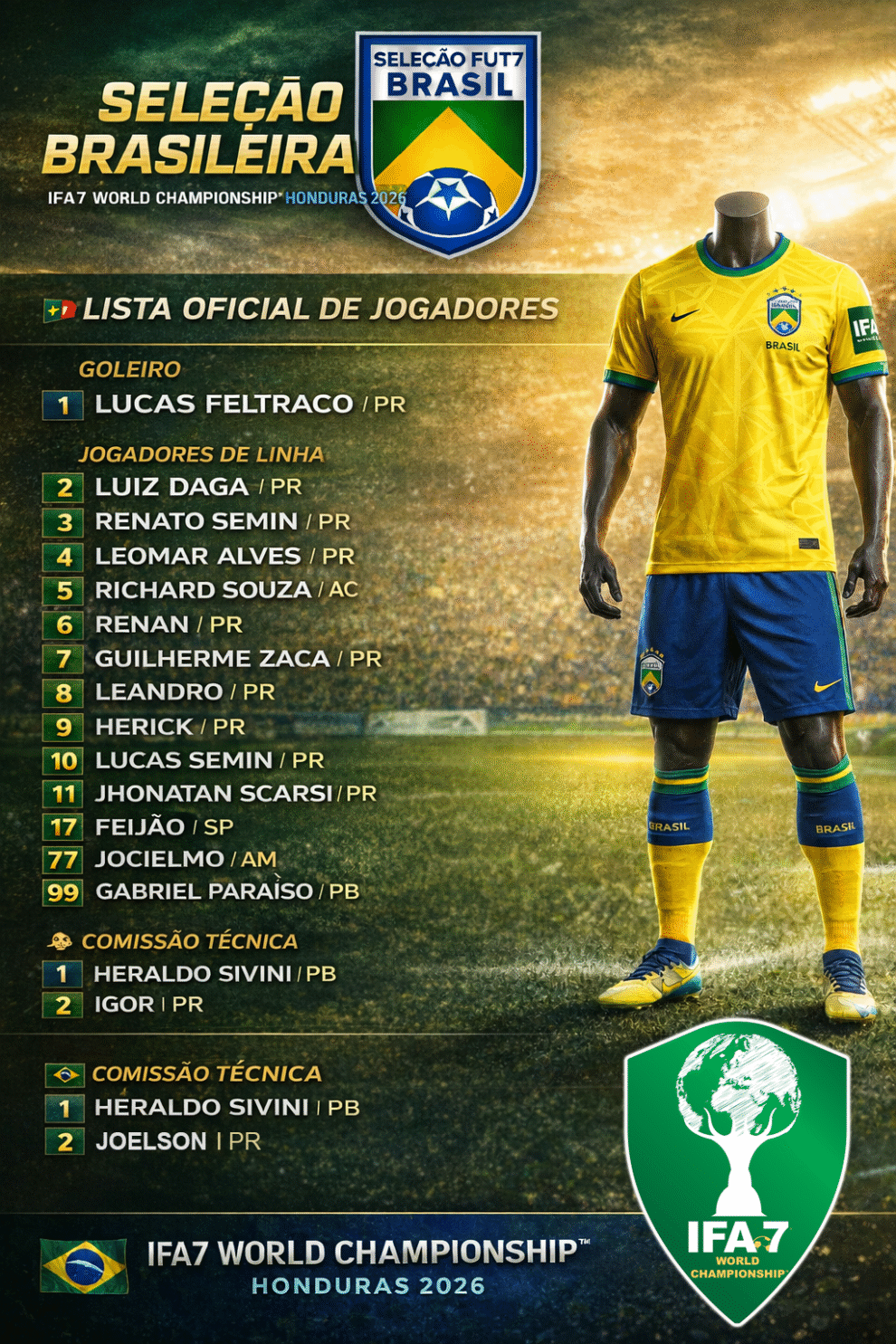 Brazil enters the competition with a balanced squad capable of adapting to the dynamic nature of 7-a-side football — a format that demands speed, intelligence, and precision.